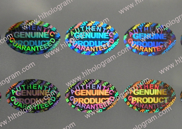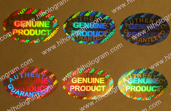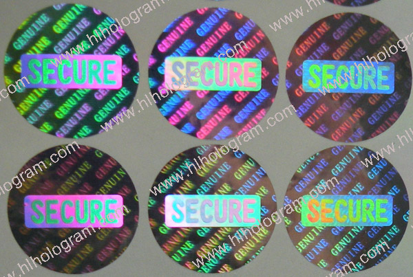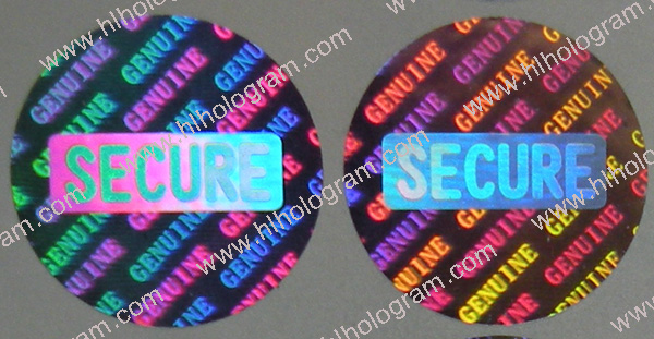 SECURE GENUINE, 2D/3D holographic sticker, two layers, two color in forground, two color in background with good depth and shiny foreground.