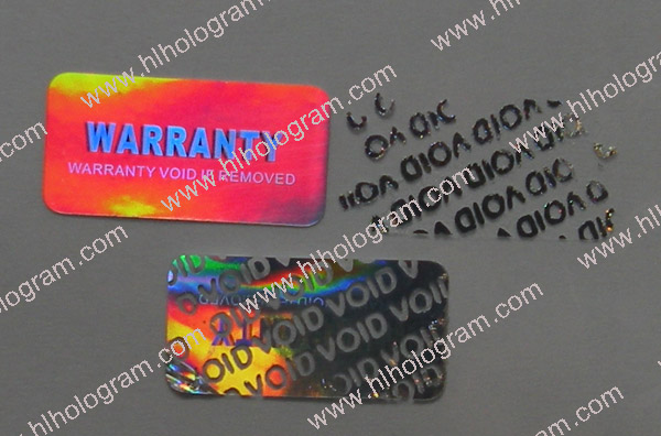 Tamper Evident hologram sticker. Tamper evident/Tamer proof is default feature for security holographic sticker. The hologram sticker leaves residue when peeled off.